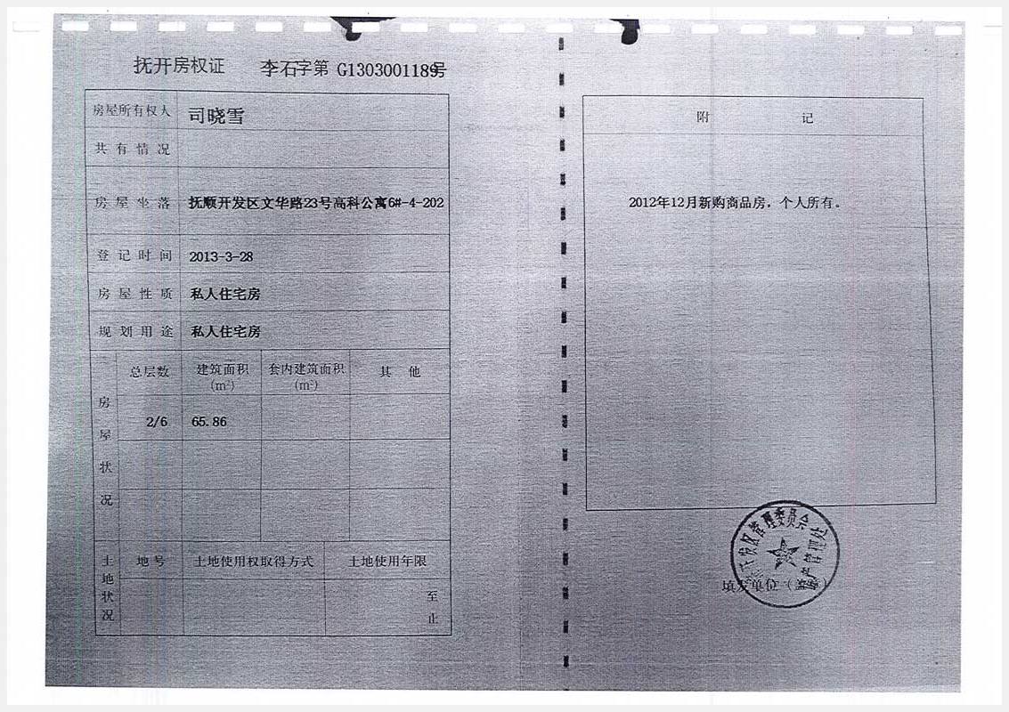 名稱:撫順開發(fā)區(qū)文華路23號高科公寓6#房產(chǎn) 面積:65.86㎡ 瀏覽次數(shù):1152