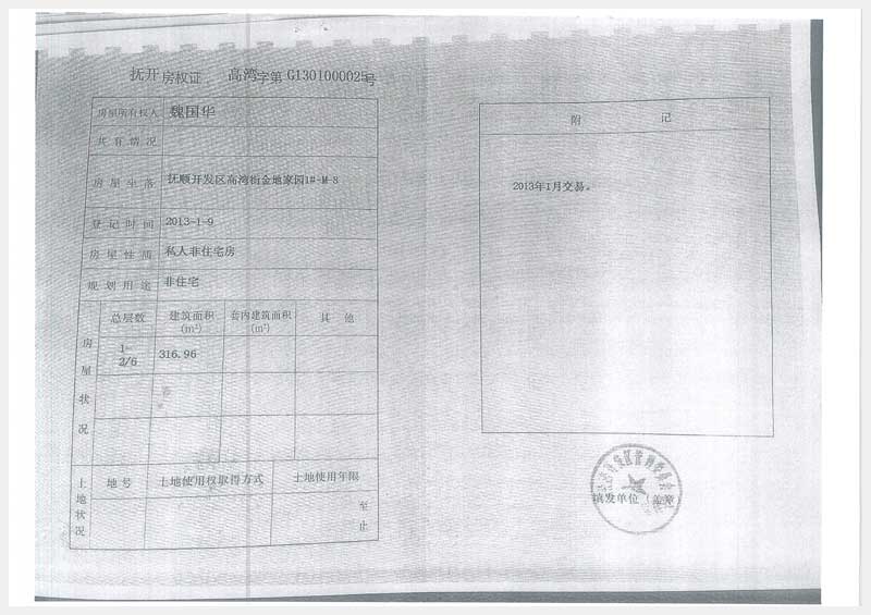名稱:撫順開發(fā)區(qū)高灣街金地家園1#-M-8房產(chǎn) 面積:316.96㎡ 瀏覽次數(shù):1053