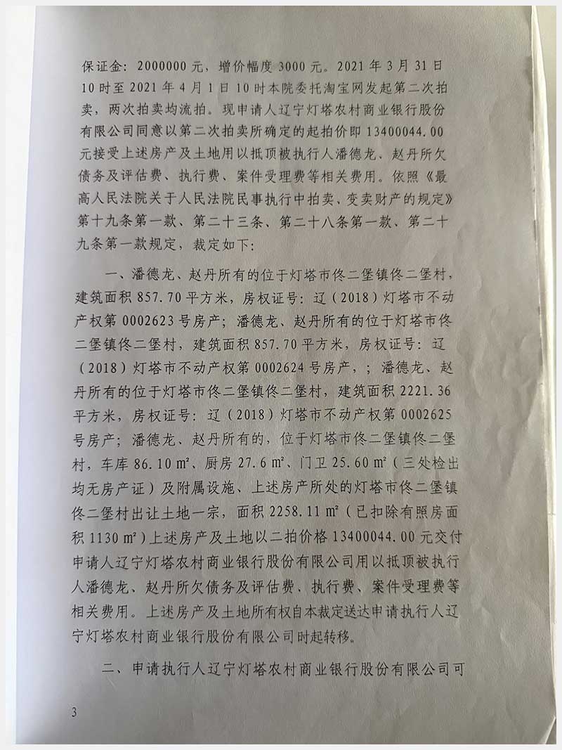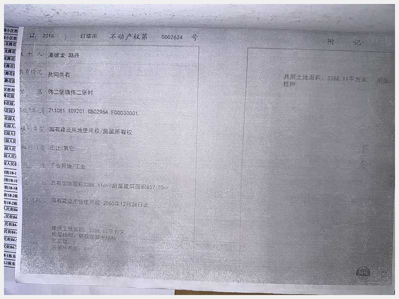 名稱(chēng):燈塔市佟二堡鎮(zhèn)佟二堡村房產(chǎn)及土地使用權(quán) 面積:房產(chǎn):有證:3079.06㎡,無(wú)證:139.3㎡;土地:3388.11㎡ 瀏覽次數(shù):3