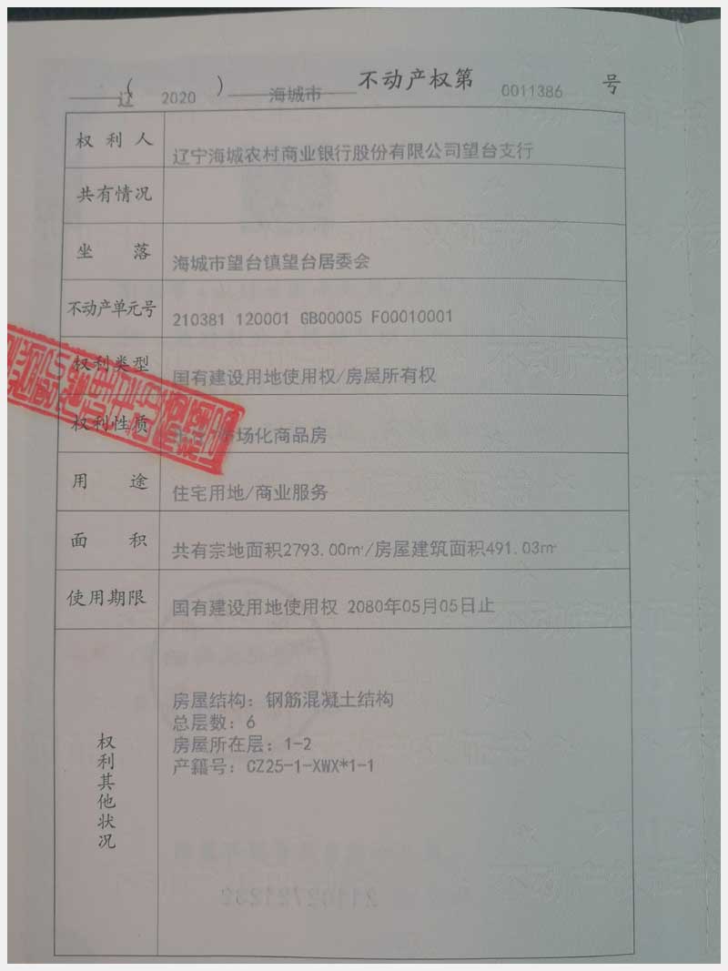 地址:海城市望臺鎮(zhèn) 標(biāo)的號: