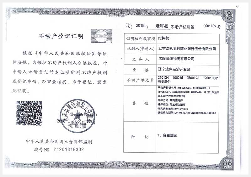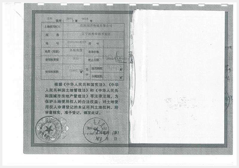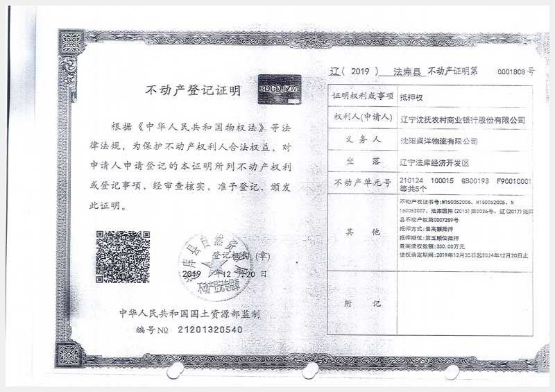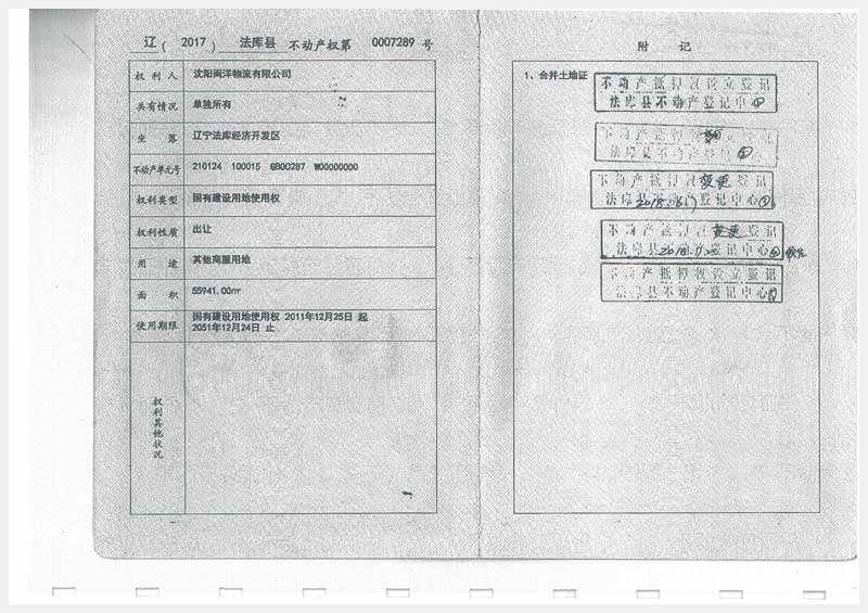 22號 沈陽市法庫縣經(jīng)濟(jì)開發(fā)區(qū)6號房產(chǎn)及土地使用權(quán)