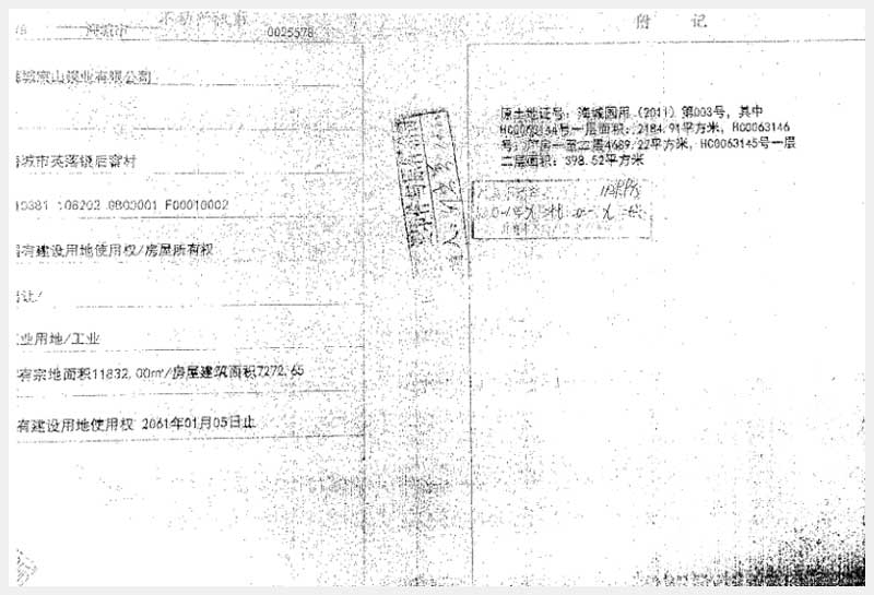 名稱:海城市英落鎮(zhèn)后窨村房產(chǎn)、土地使用權(quán)及機(jī)器設(shè)備 面積:房產(chǎn):有證:7272.65㎡,無證:5963.33㎡;土地:11832㎡;設(shè)備:776套 瀏覽次數(shù):1086