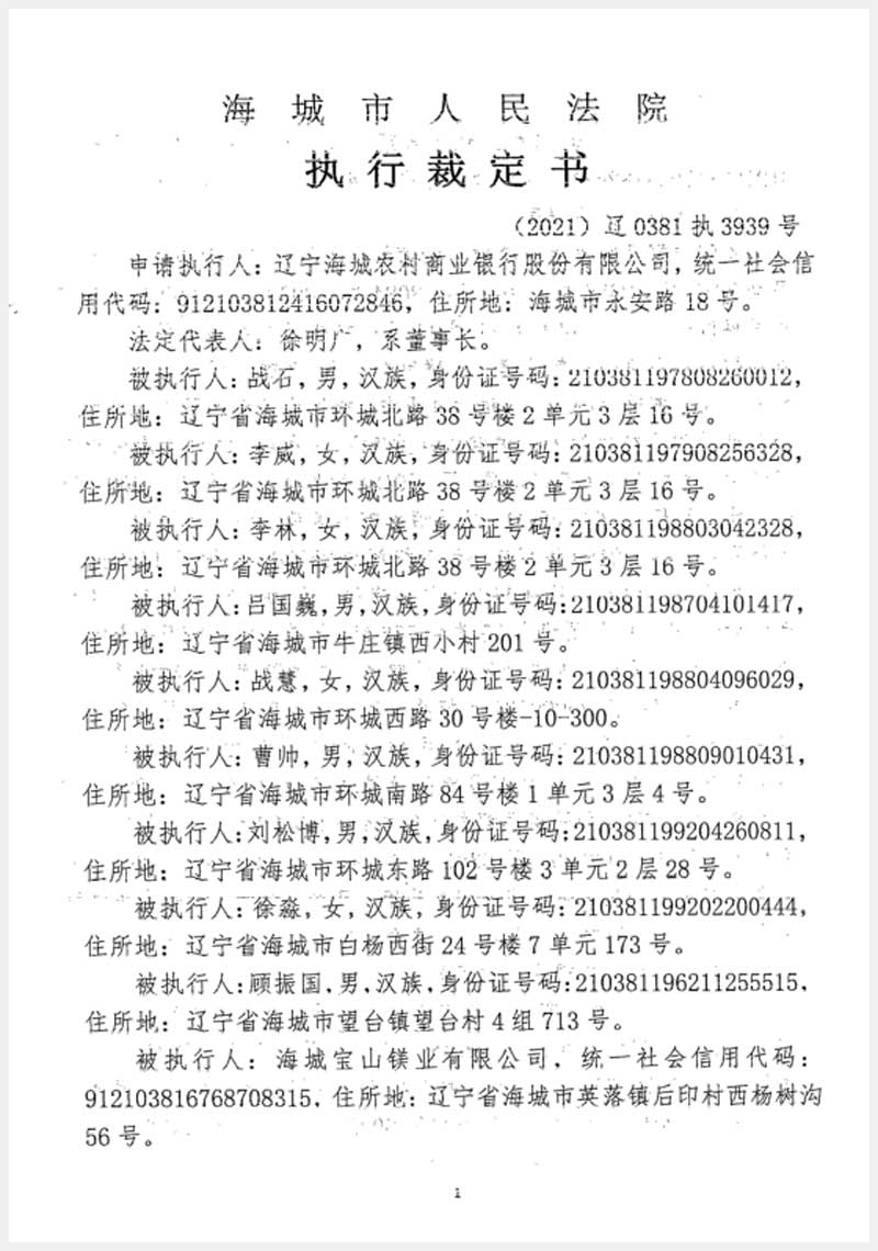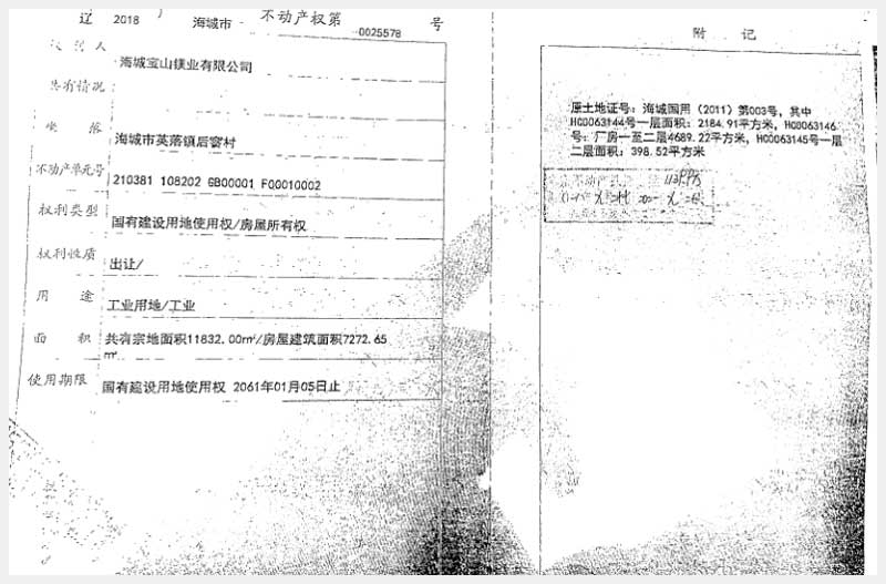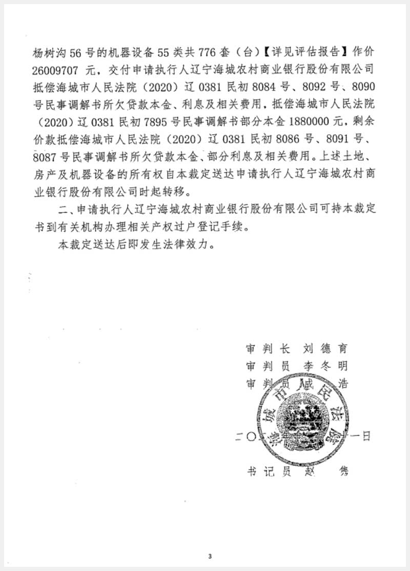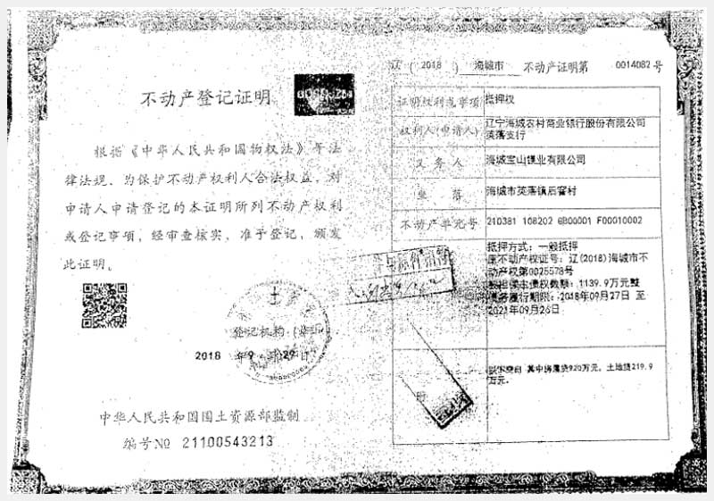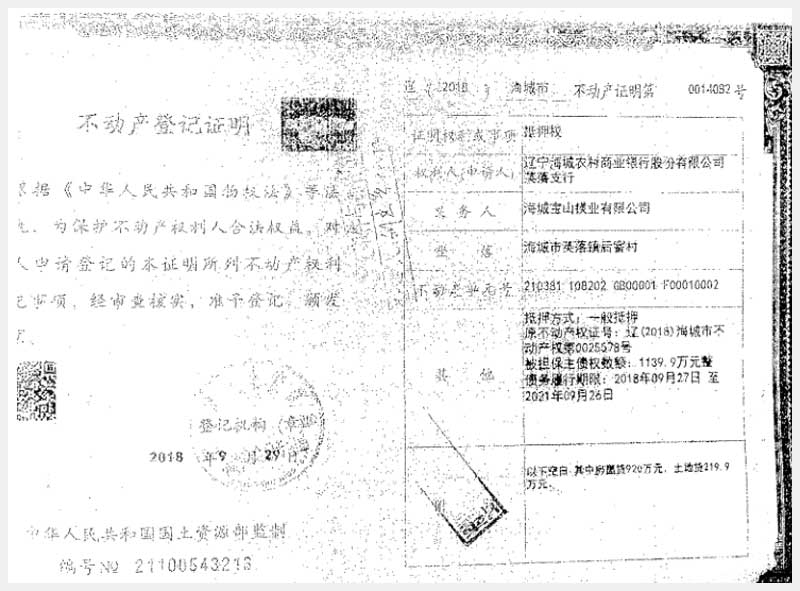181號 海城市英落鎮(zhèn)后窨村房產(chǎn)、土地使用權(quán)及機(jī)器設(shè)備