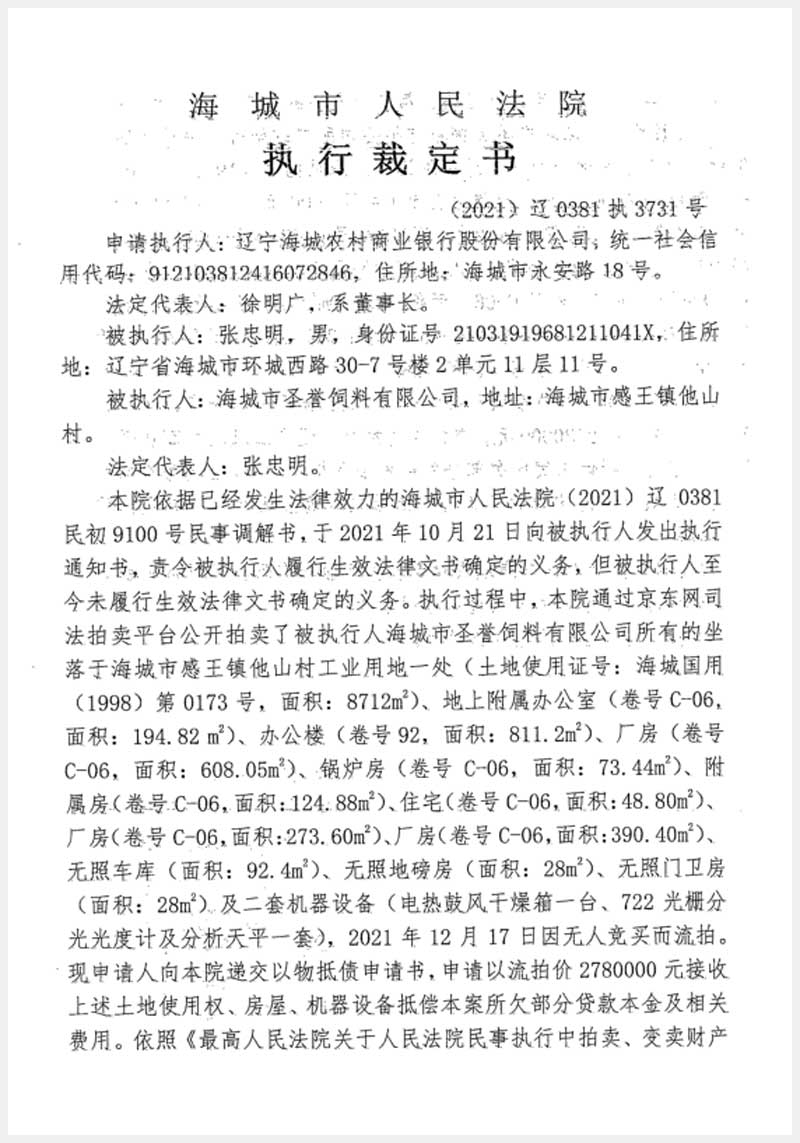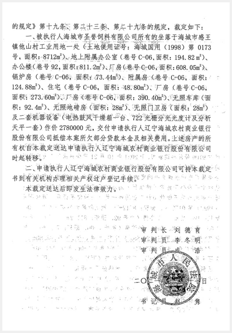 名稱:海城市感王鎮(zhèn)他山村房產(chǎn)、土地使用權(quán)及機(jī)器設(shè)備 面積:房產(chǎn):有證:2525.19㎡,無證:148.4㎡;土地:8712㎡;設(shè)備:2套 瀏覽次數(shù):1021
