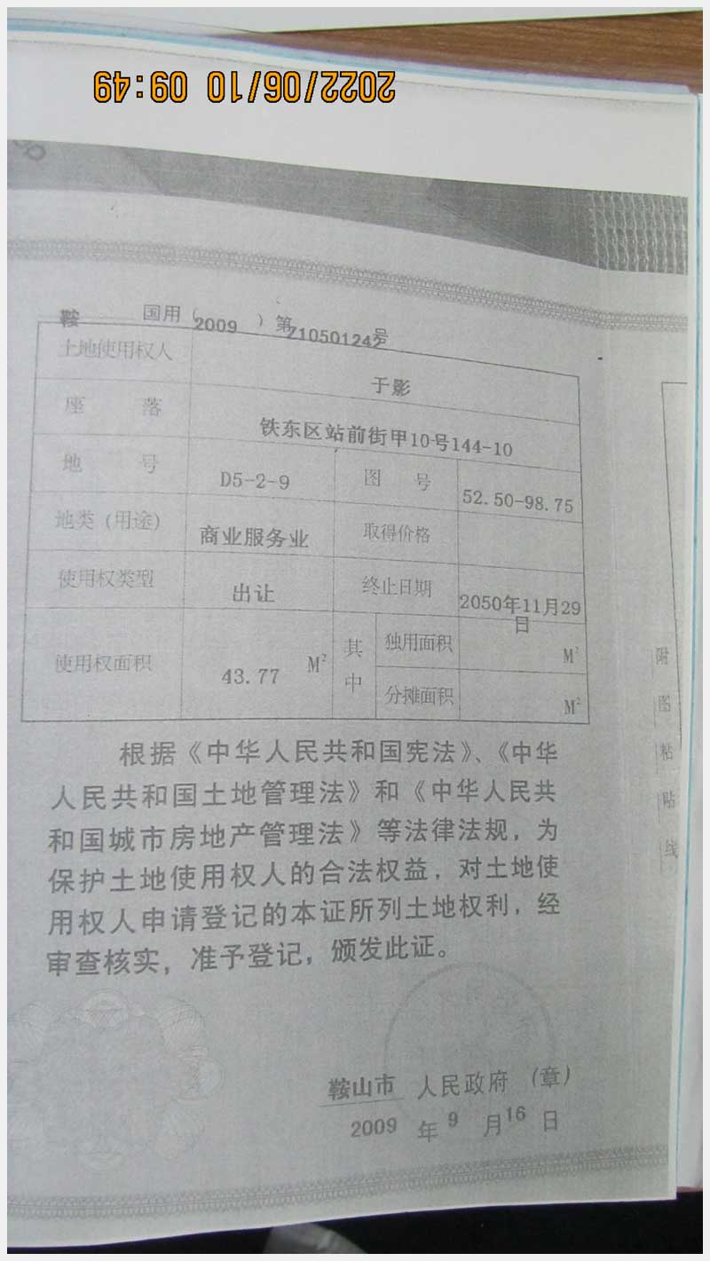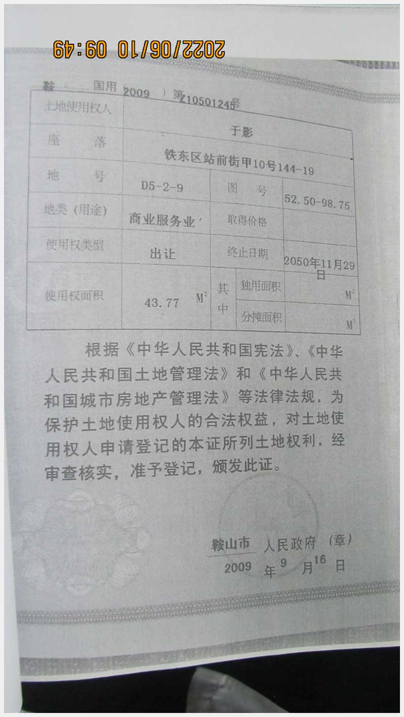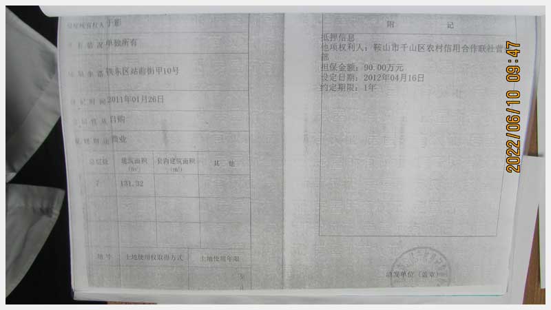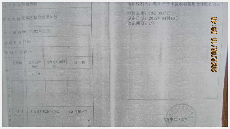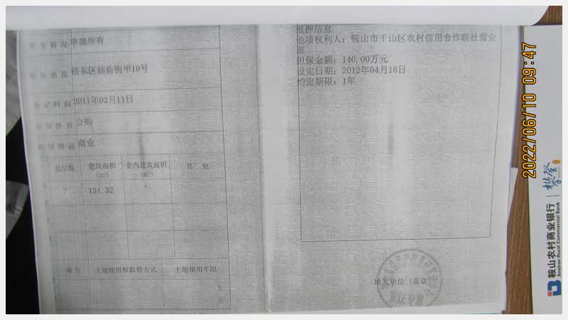 名稱:鞍山市鐵東區(qū)站前街甲10號房產(chǎn) 面積:342.77㎡ 瀏覽次數(shù):1416