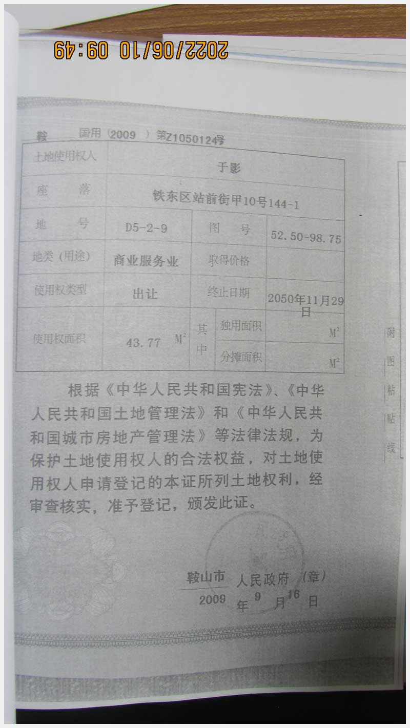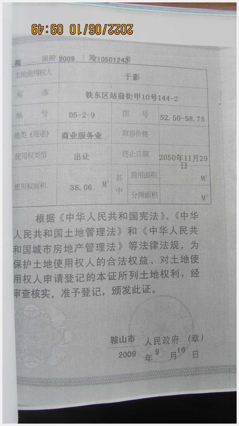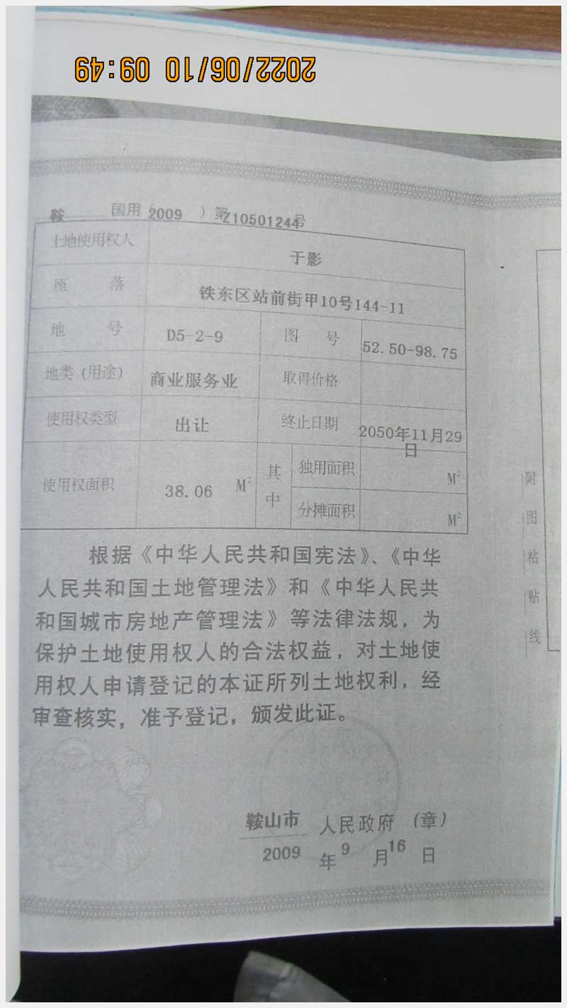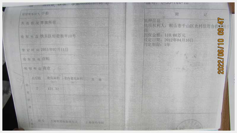 名稱:鞍山市鐵東區(qū)站前街甲10號房產(chǎn) 面積:342.77㎡ 瀏覽次數(shù):1416