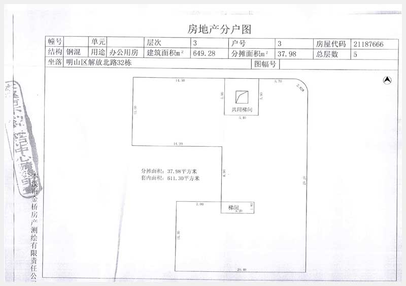 名稱:本溪市明山區(qū)解放北路32東3層房產(chǎn) 面積:649.28 ㎡ 瀏覽次數(shù):922