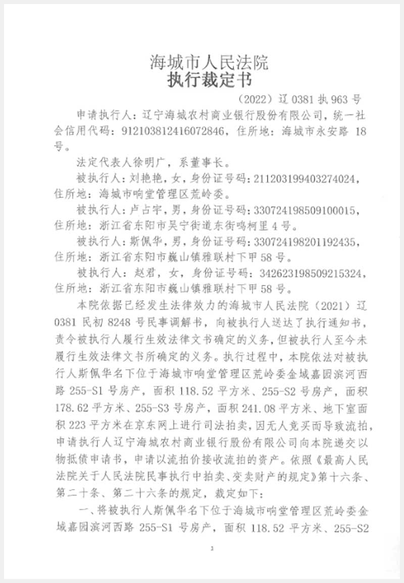 235號(hào) 海城市響堂管理區(qū)荒嶺委金域嘉園濱河西路255-S1、S2、S3號(hào)房產(chǎn)