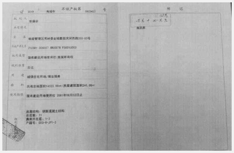 名稱:海城市響堂管理區(qū)荒嶺委金域嘉園濱河西路255-S1、S2、S3號(hào)房產(chǎn) 面積:有證:538.22㎡;無證:223㎡ 瀏覽次數(shù):848