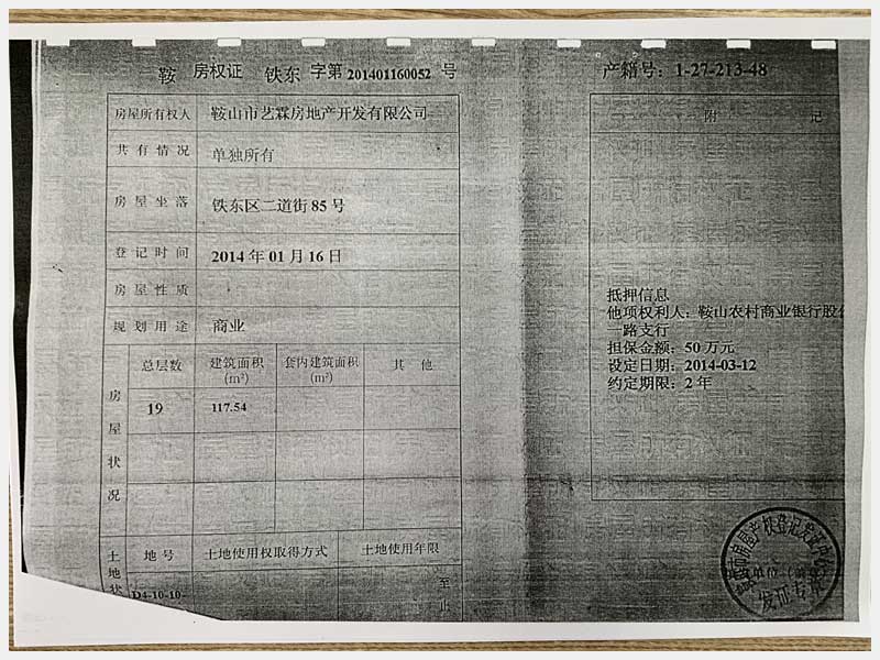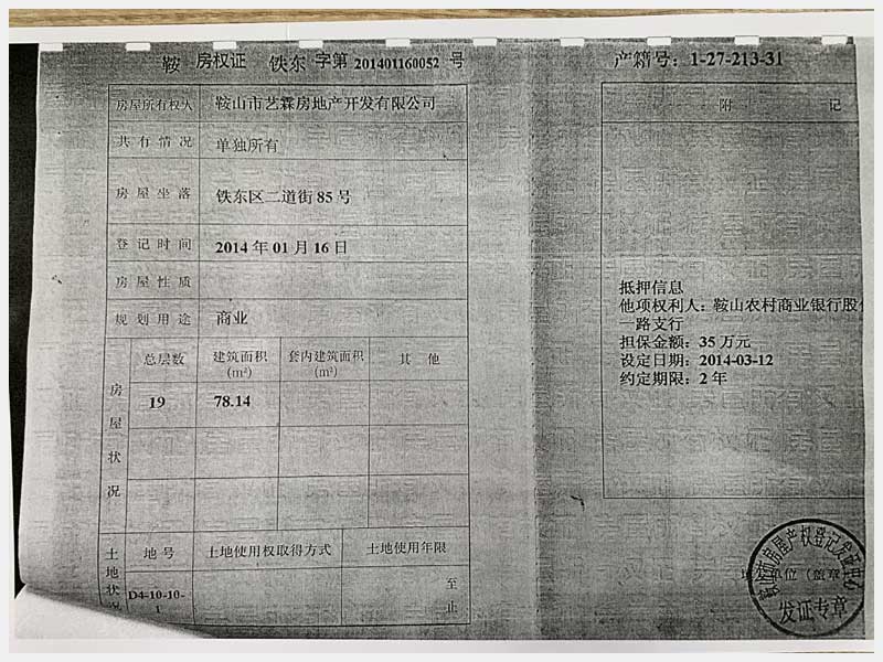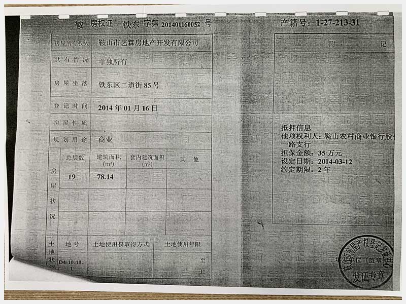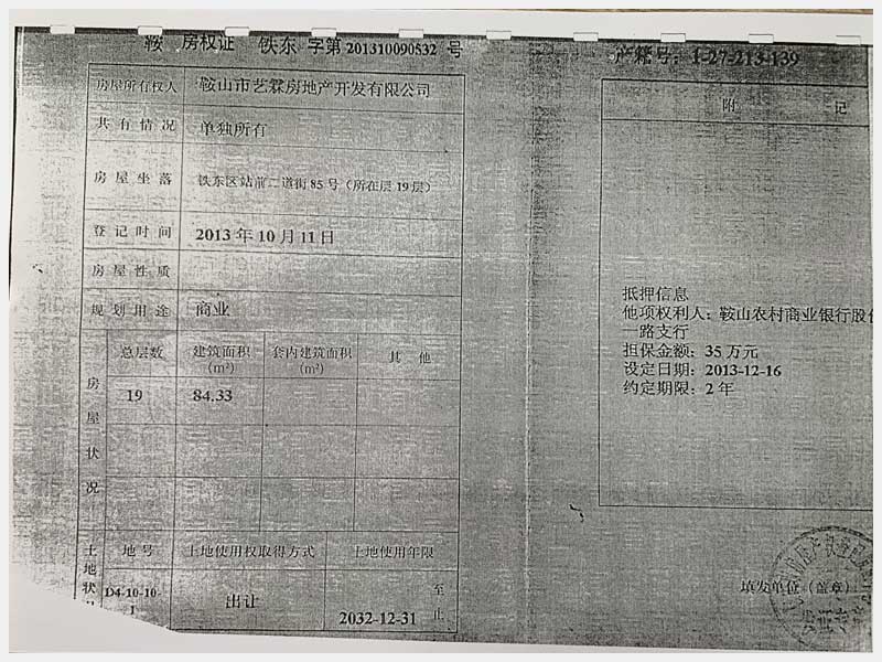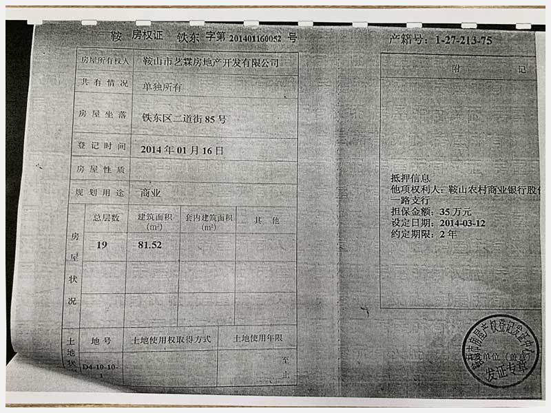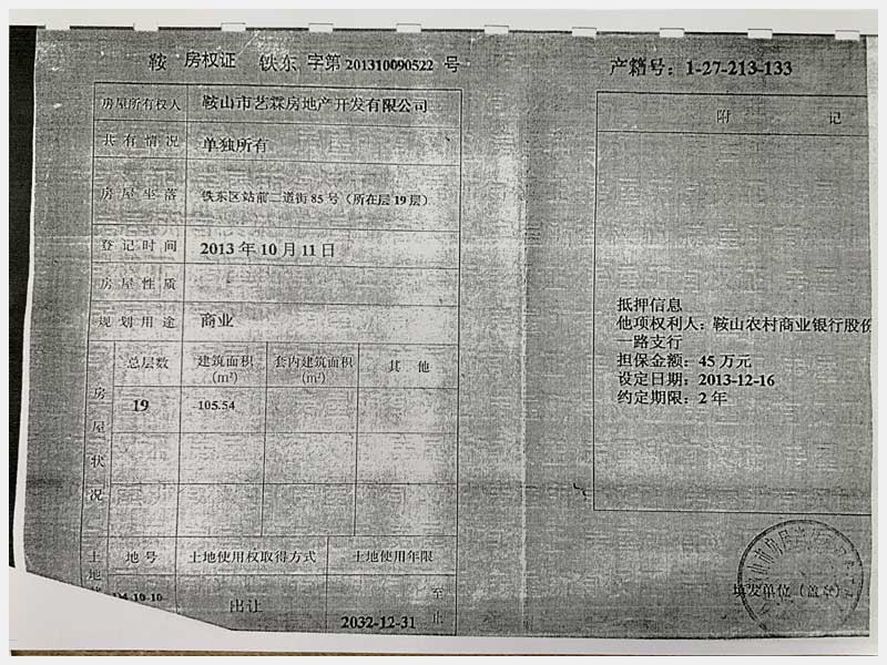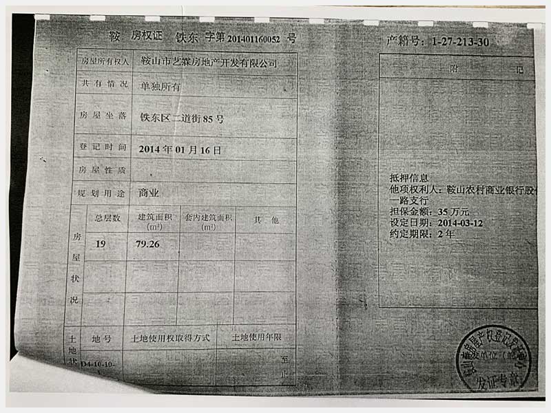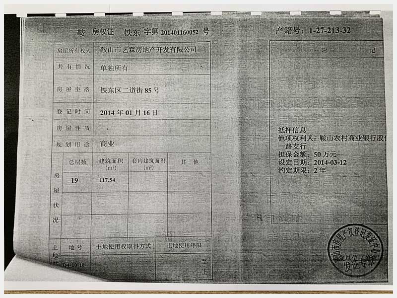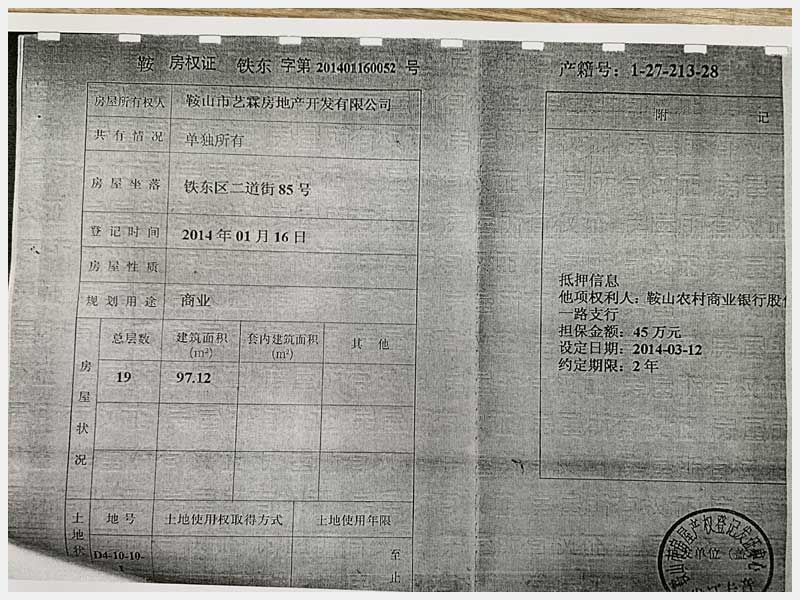 名稱:鞍山市鐵東區(qū)二道街85號房產 面積:1873.32㎡ 瀏覽次數:1548