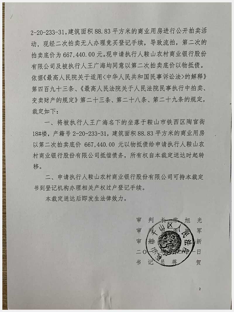 地址:鞍山市鐵西區(qū)陶官街 標的號:66