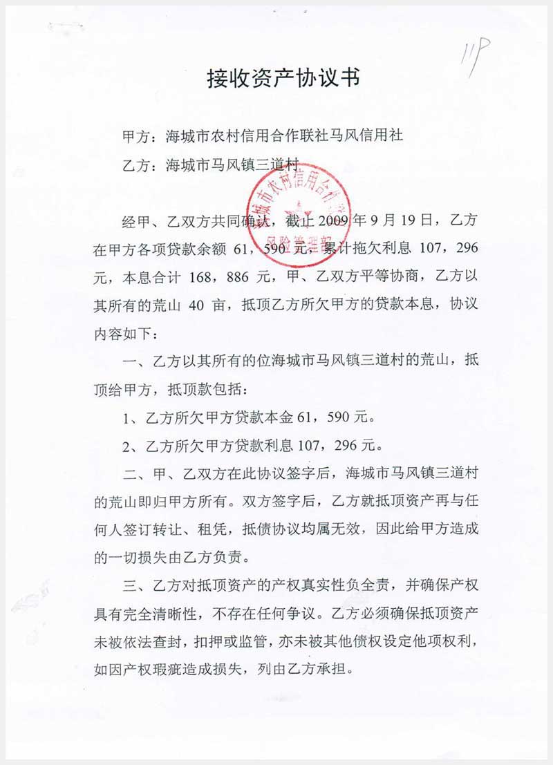 18號 馬風鎮(zhèn)三道村荒山使用權