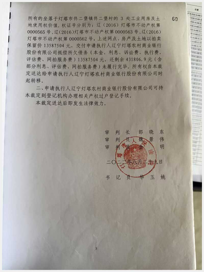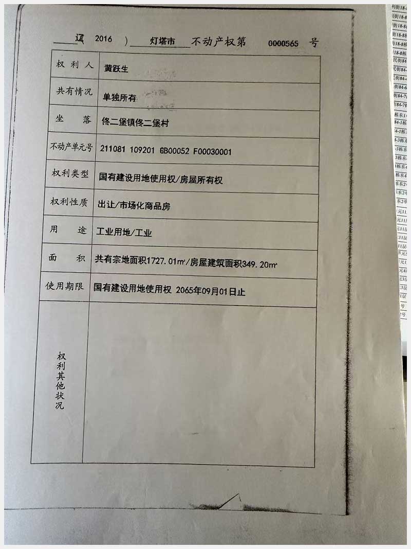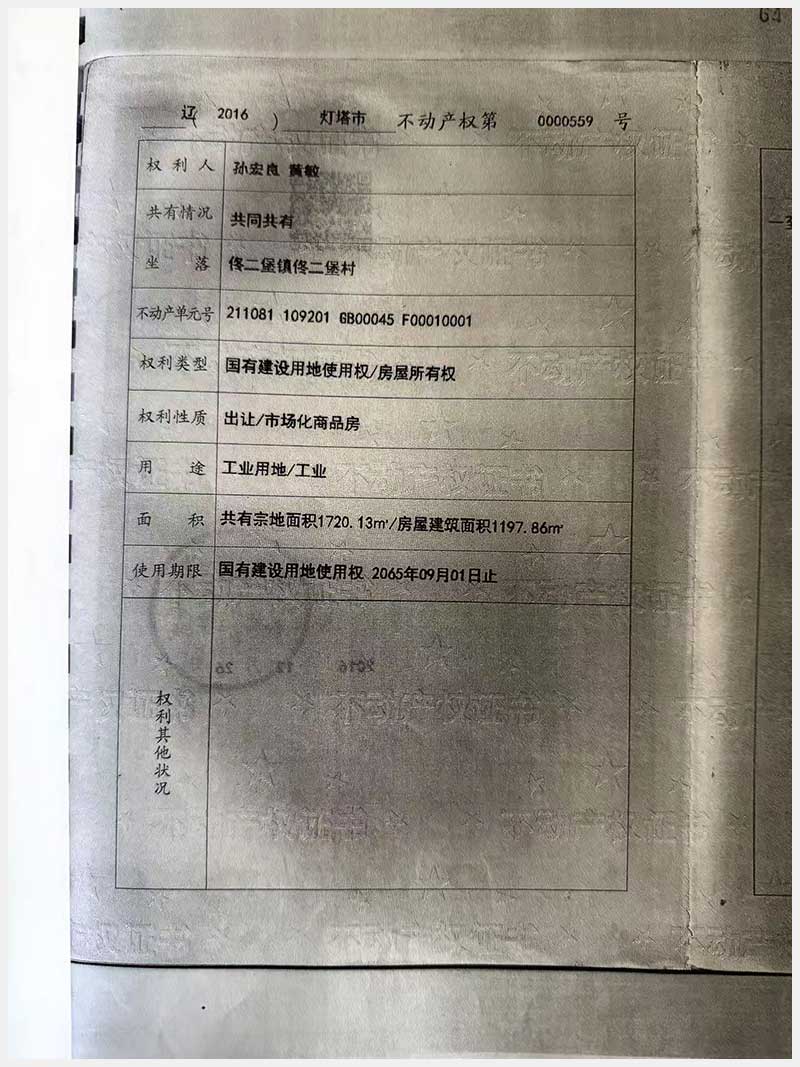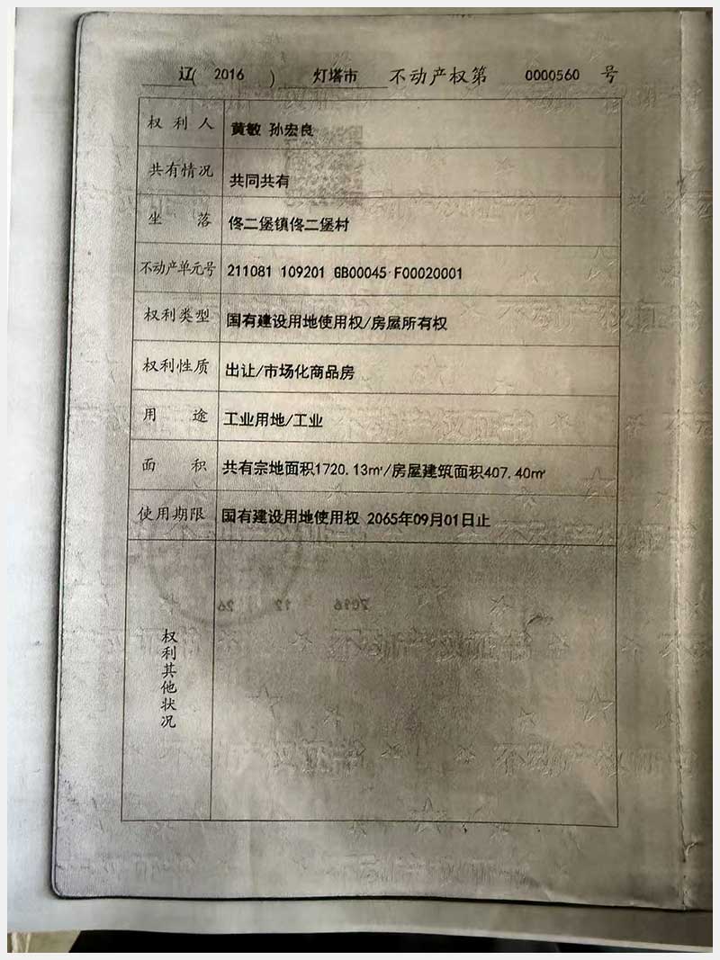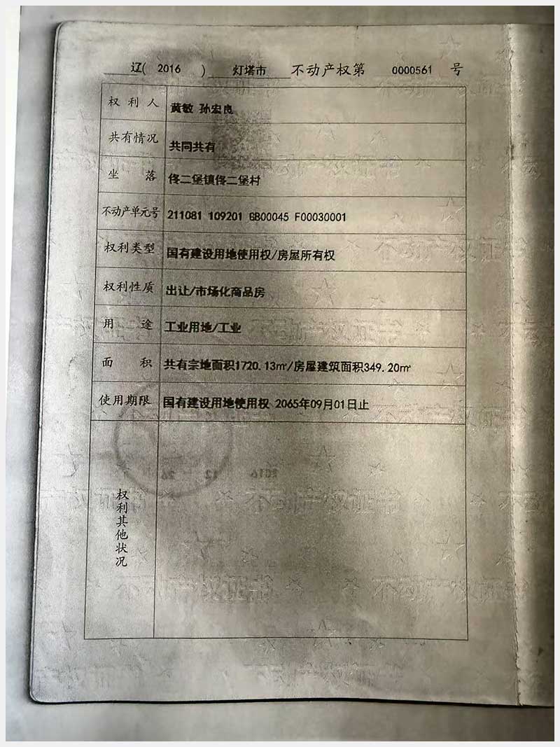 名稱:燈塔市佟二堡鎮(zhèn)佟二堡村房產(chǎn)及土地使用權(quán) 面積:房產(chǎn):1954.46㎡;土地:1720.13㎡ 瀏覽次數(shù):3