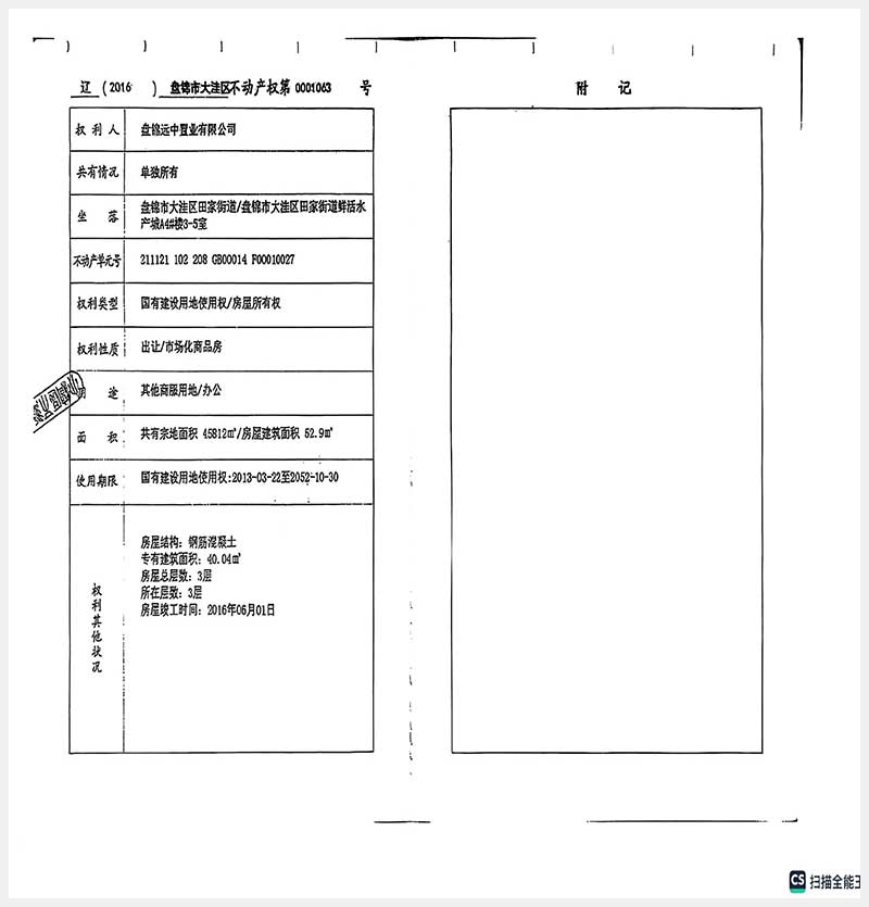 名稱:盤(pán)錦市大洼區(qū)田家街道房產(chǎn) 面積:4445.22㎡ 瀏覽次數(shù):21